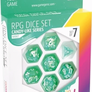 16mm Aluminium Plated Acrylic Poly Dice Set: Rainbow Aegis w/ White Numbers