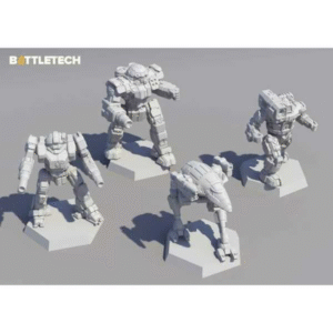 Unleash the Clan Heavy Battle Star on your enemies! Turkina, Kingfisher, Huntsman, Ebon Jaguar, and Crossbow—no assembly required—along with five MechWarrior pilot cards and five Alpha Strike cards.